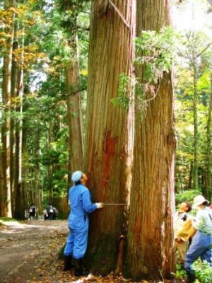 杉並木と奥社周辺に生える木の、樹種を調べ、樹径を測り、