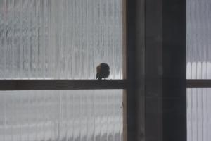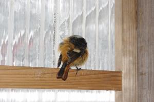 朝、事務所のペレットストーブを付け、仕事をしようかと思っていると、事務所の机から見える窓のすぐ傍に鳥がじっと止まっているのに気がつきました。