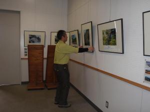 先日、大震災の余震の影響で延期となった「平成23年度アクティブ・レンジャー国立公園写真展」の写真設置作業を行いました。昨年に引き続き道の駅あらい駅長さんのご厚意で、駅内「くびき野情報館」にある立派な展示室をお借りして3月23日水曜日から3週間開催させて頂いています。