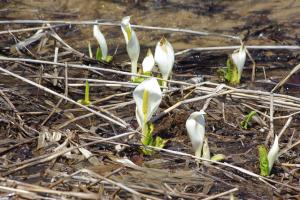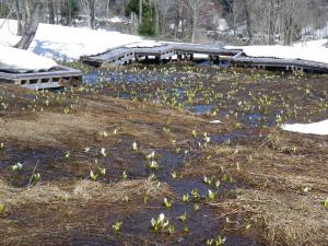 宿舎が無くなり、園地になった事により、自然とミズバショウが生えたという結果になったと、白峰生まれ白峰育ちのSさんに教えていただきました。