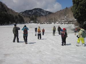 <長池を望む、参加者が立っている場所は、夏には湿原となり立ち入れない>
