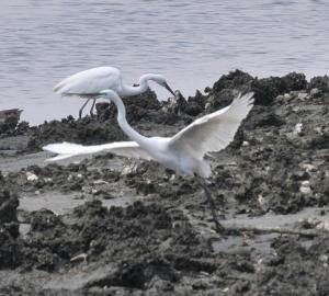 旅鳥ではないが、この時期、クチバシが黒くなり、目先の色が緑に変わるダイサギも、恋のお相手を探しているようでもあり、