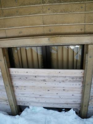予想以上の雪の圧力で雪囲いごと割ったものと推測しています。