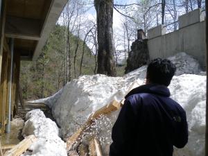 なるほど、2階で外した雪囲いを雪の上に落として滑らせて移動させるんですね。