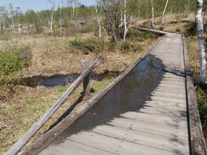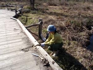 そこで今回、木道の枠に水抜き用の隙間を開けることにしました。
