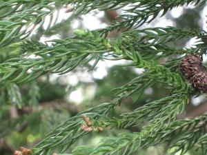 雪に耐えるために、通常の杉よりも葉の形状が内側にカールしており