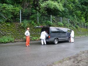 この日は早朝から日中ずっと実施して大白川に向かう方に取組への協力依頼を行い、帰った来た車に主旨を説明し、車内を確認させてもらいました。