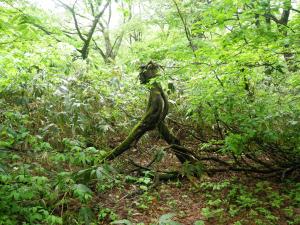 その散策路を歩いている途中で、ブナの大木が並ぶ中でこんな木を見つけたりしました。