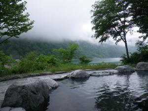 ロッジの傍には、エメラルドグリーンの色をした白水湖があり、その湖畔には湖が一望できる露天風呂もあります。