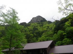 会場となったビジターセンタ裏にある六百山の方を見上げると、新緑のコントラストがとても鮮やかでした。上高地の新緑はまだ楽しめそうです。