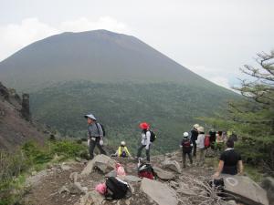 小さい石がゴロゴロしているところもあり、歩きづらかったとは思いますが、元気に登頂してくれました。黒斑山山頂に到着後、お待ちかねのお昼タイムです♪家族ごとに浅間山を眺めながら、美味しいお弁当を頬ばっていました。頑張ったから余計に美味しかったのではないでしょうか。