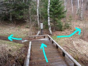橋を渡って左方向が女小屋の森、右方向が夜泣峠なのですが、なぜか左方向へしか行けないような作りになってます。標柱には両方向の指示が出ているものの、右方向は踏み跡も薄く、なんだか不安。