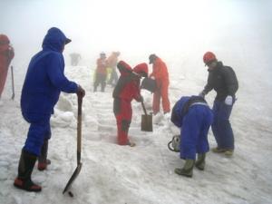 (雪渓切りの後は、残念ながら、だいぶ薄れております・・・)