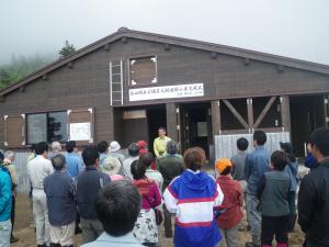 当日は天候もなんとか持ち、関係者一同と、たまたま登山で居合わせた利用者の方々とともに甚之助避難小屋の完成を祝いました。