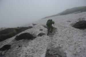 しかし少し歩道が見えているものの、雪渓が数カ所あります。