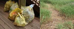 【拾ったゴミ(左)ときれいになったヨシ原(右)】