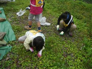 そこで、オオバコという低地生の在来植物であるにも関わらず、亜高山、高山帯に侵入してきている、いわゆる外来生物の除去を一緒に行いました。