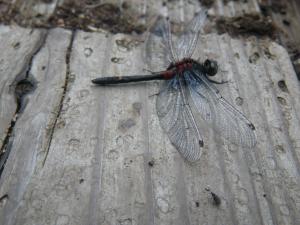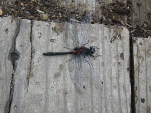 避難小屋近くの木道にぽとりとトンボが落ちていました。