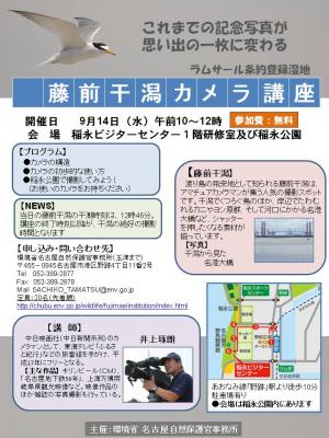10月29・30日に開催される「藤前干潟ふれあいデー」(主催:藤前干潟ふれあい実行委員会)のイベントとして、藤前干潟をテーマとした「フォトコンテスト」を行います。応募期間は、10月3日(月)当日消印有効までです。詳しいお問い合わせは、名古屋自然保護官事務所まで℡(052)389-2877