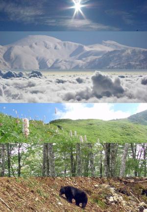 白山には、ツキノワグマやイヌワシなどの大型鳥獣が高密度で生息するなど、優れた自然地域として、昭和37年に国立公園に指定されました。