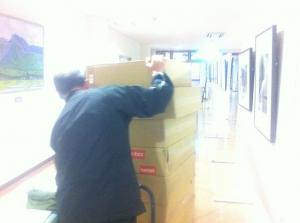開催前日の15日に、カタログの貼り付けから額と解説類の掲示までの作業を行いました。