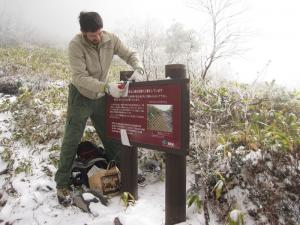 先日は、根子岳の登山道に設置している看板の越冬準備を行いました。