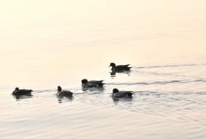 【今、藤前干潟にはたくさんのカモたちがいます】