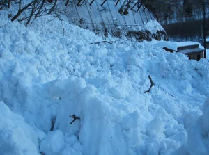 開山期間中は簡単に歩ける上高地も、閉山後は自然の荒々しい姿を見せます。平成21年度には県道上高地公園線上で雪崩も発生しています。