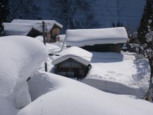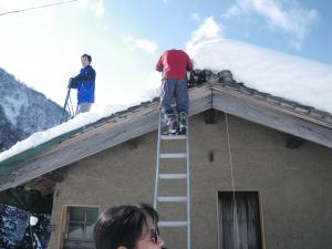 小原にある古民家の屋根の上に乗って、雪おろしもしました。
