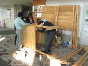 今日の午前中は展示のために、会場で準備作業を行いました。