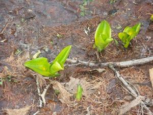 戸隠に待ちにまった春が訪れ、水芭蕉が芽吹きはじめました。