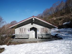 【中飯場の休憩舎。この先から雪が連続的についていました。】