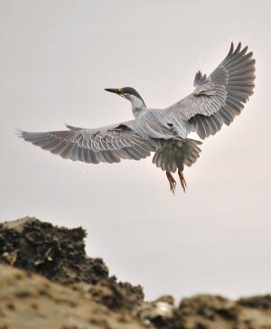 【白い縁取りのある羽が笹の葉のように見えるササゴイ】