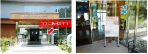 【稲永ビジターセンターの入り口(左)と情報掲示板(右)】