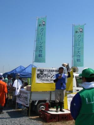 【クリーン大作戦事務局の方の挨拶。空は見事な快晴でした。】