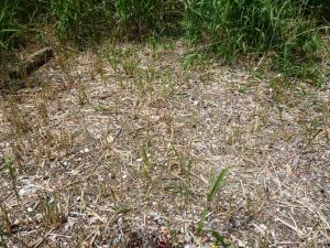 稲永公園前の永徳スリップ周辺には小規模なヨシ群落が存在します。この場所は現在、写真のように堤防護岸できれいに整備されていますが、以前は良好なヨシ群落が堤防沿いに広がる場所でした。護岸工事が始まってから完成までの期間、取り残された小さなヨシ群落は少しずつその姿を変えており、近年はヨシがパッチ状に散在するようになりました。また、岸近くのヨシ原の根がむき出しになっている場所や、土砂やゴミが堆積して陸地化が進行し、陸生植物が混生する場所も見られます。さらに、ヨシ原の前に広がる干潟の底質も以前に比べてやや堅くなり、底生生物の分布も変化しています。地元の人々によれば、これらの環境変動は護岸工事が始まった頃から見られているので、もしかするとこの影響があるのでは?というお話でした。