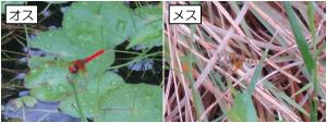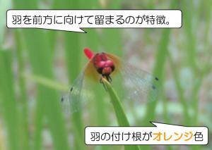 全長2cmほどと、とっても小さいトンボですが、オスは真っ赤な体の色をしているので、比較的見つけやすいです。