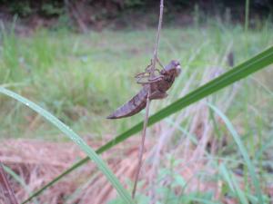 この日は、他にもショウジョウトンボやキイロイトトンボなど、たくさんのトンボが飛んでいるのが見られました。水辺の植物をよく見てみると、いろんなヤゴがたくさんくっついています。