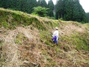今回は6年生になった最後の作業で、事前に管理者の方が行ったミチノクフクジュソウが芽吹く場所の草刈りの刈られた草を除去し、来年の生育環境を造るという作業を行いました。