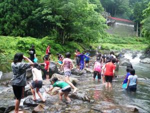 まだ冷たい白山の雪解け水の中で遊ぶ子供達を見ながら、「来年は中学生だというのに・・」と呑気な事を考えていると、水をかけられたり、押され水没したりで、いつの間にか全身ずぶ濡れでした。