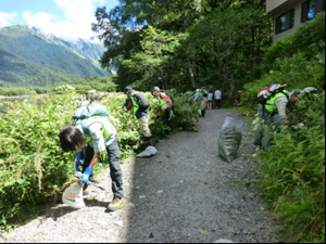 また、8月22日には、上高地を美しくする会(上高地関係者によるボランティア団体)の活動として、約50人がエゾノギシギシやメマツヨイグサなど7種類、162kgの外来植物を除去しました。