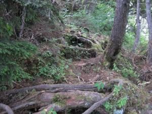 ・全体的に急傾斜です。木の根を伝っていく箇所などに補助のロープが付いています。階段等の施設はありません。