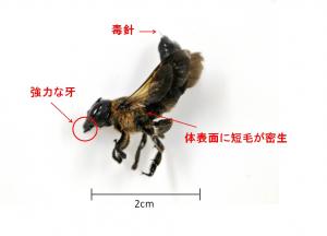 【捕らえられたタイワンタケクマバチハキリバチの仲間の外部形態】