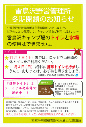 (11月4日までロッジ立山連峰外トイレ使用可能)