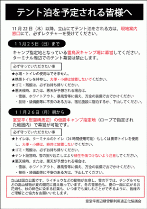 ■立山・室堂平周辺にてテント泊を予定されている皆さまへ