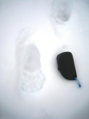 すぐ脇に、トレース(雪の上についた足跡)があります。