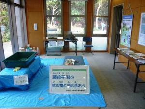 来訪者の多くは、藤前干潟の存在や場所を知らず、「干潟」が何なのか分からない方もいらっしゃり、名古屋の隣町であるのに案外知られていないことに気づきました。藤前干潟を知らなくても、生き物には高い関心があるようで、みなさん展示水槽を食い入るように見て行かれました。生き物には人々を引きつけるパワーがあると実感しました。今回、出張してもらった藤前干潟の生き物達は、一日子供達の相手をしたおかげで大変お疲れの様子でした。