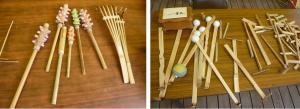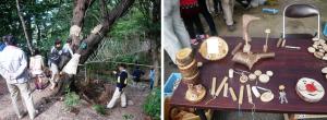 【モンキーブリッジで遊ぶ(写真左)、木ーホルダー(写真右)】