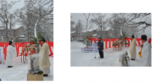 雪が降り続き、早朝に除雪車が稼働し、なんとか…開かれた閉山祭。