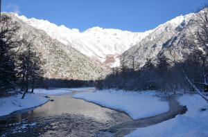 翌日は一転して、良い天気に恵まれ、雪化粧した穂高連峰が輝いていました。
